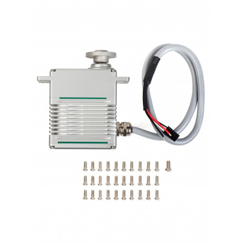 Высококачественный влагозащищённый сервопривод DSservo цифровой с металлическими шестернями DES220-24 и углом вращения 200 градусов, обеспечивает точное управление положением и высокой мощностью для различных автоматизированных систем. Качественные компоненты и Влагозащита IP67 сервопривода влияет на его надежность и долговечность в условиях повышенной влажности, дождя, пыли и других агрессивных сред.