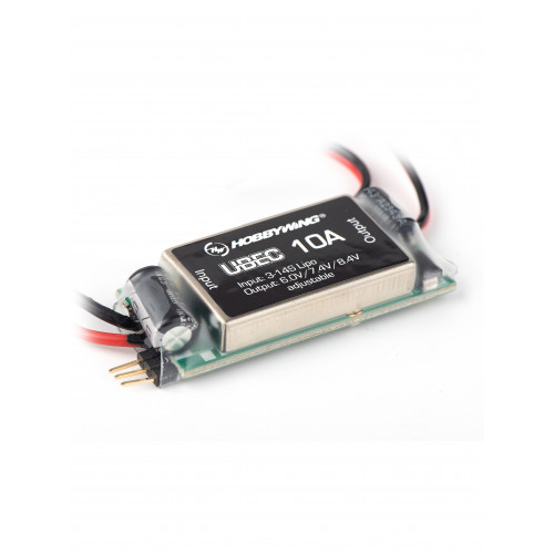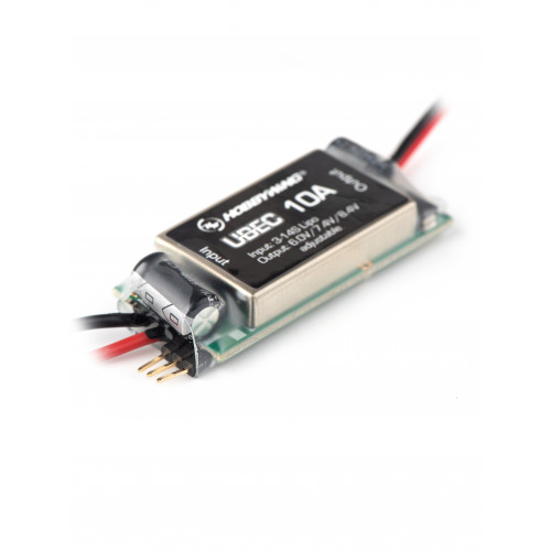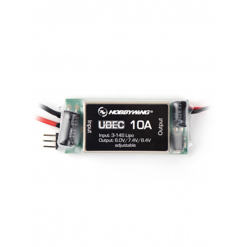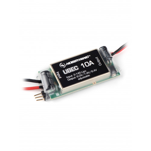 Его коэффициент полезного действия более девяноста процентов, благодаря обновленной схеме, которая считается лучше линейной. В комплект входит регулятор понижающий Hobbywing, подходящий для питания подсветки, гироскопов и не только.