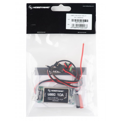 Предлагаем вам высококачественный регулятор для LiPo, который работает от двух-шести банок. Его напряжение переключается с помощью джамперов. Импульсный регулятор Hobbywing не боится ни пробоя, ни увеличения напряжения и температуры, ни короткого замыкания на выходе. Он также защищен от наводок с помощью корпуса из алюминия, который способствует эффективному отводу тепла.
