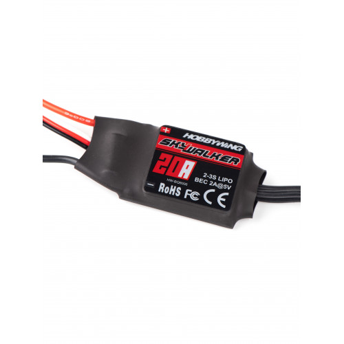 Устройство используется для управления радиоуправляемыми Самолётами. Он применяется для всех видов безсенсорных, бесколлеторных моторов. Вес приспособления 19 грамм без проводов. Для изготовления используются детали высокого качества, повышающие токоотдачу и продлевающий срок службы устройства. Регулятор Hobbywing известен высокоскоростным откликом и четкой работой.
