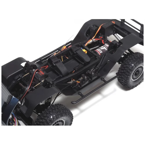 - Новая рама выполненная и высокопрочного пластика с уникальной геометрией для максимально низкого центра тяжести. Все компоненты: Новый Gearbox ( 2-х скоростная трансмиссия с раздаточной коробкой ) является одним целым и спроектирован для максимального снижения центра тяжести, регулятор, и сервоприводы управления и тормоза заднего моста установлены внутри рамы. Над Трансмиссией располагается новый батарейный отсек с адаптером для батарей разной длинны. для настройки развесовки можно использовать опциональные грузы которые продаются отдельно.